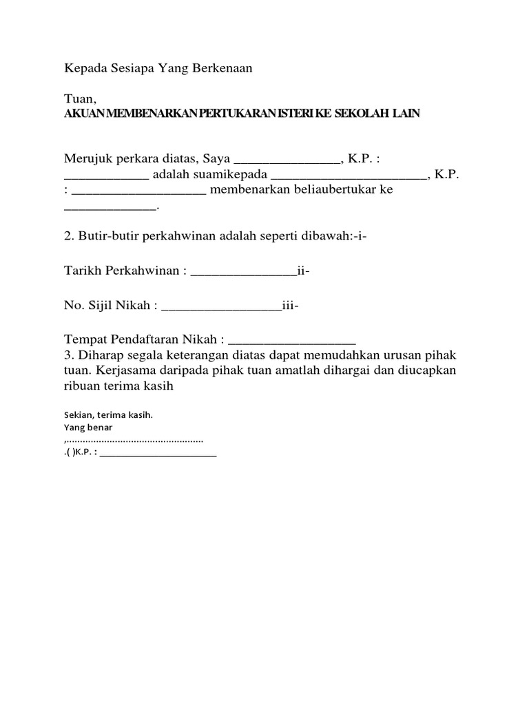 Pekerja yang berkenaan hendaklah memberi penjelasan kepadamajikan melalui surat rasmi dengan memberikan alasan yang munasabah untuk mengelakkan diri perkara : Contextual translation of surat kepada sesiapa yang berkenaan into english. Kumpulan surat pemberitahuan yang baik dan benar dalam berbagai kegiatan. Raja allah swt berkenaan dengan hal ini berfirman: Savesave contoh surat kepada sesiapa yang berkenaan for later.