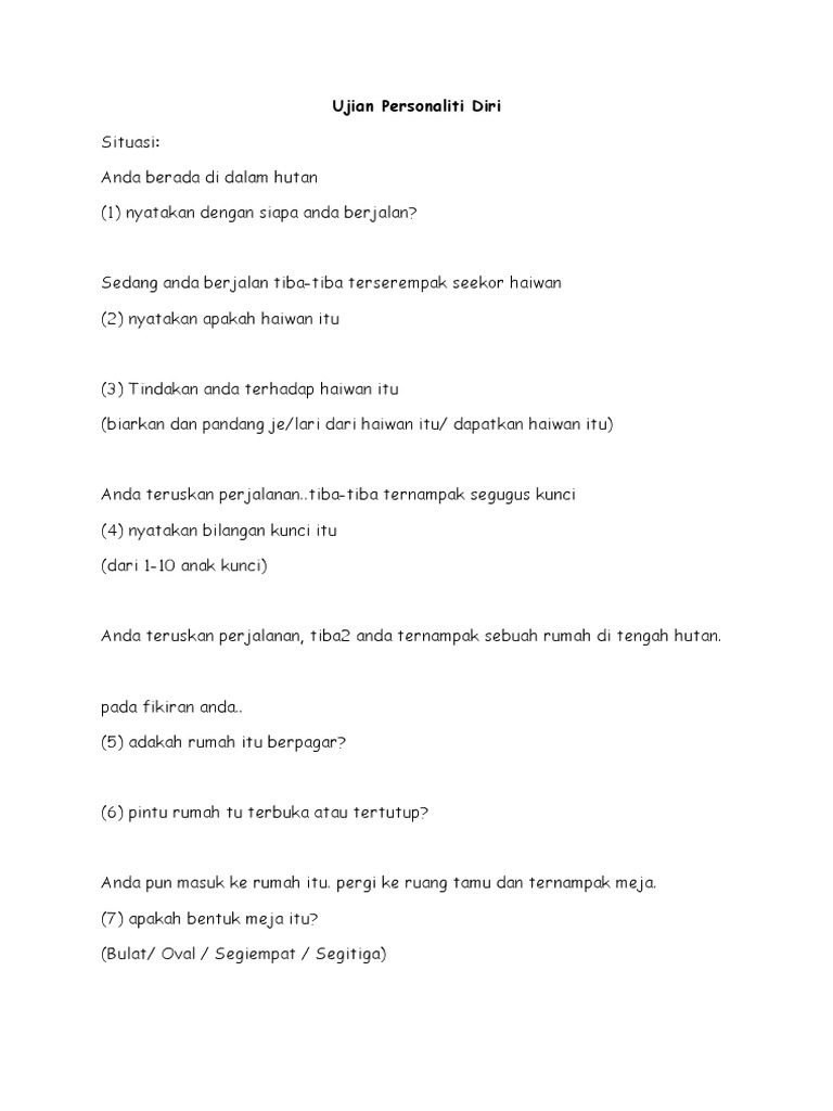 Topik5 2 Ujian Ips Feb2013 Pdf Inventori Personaliti Sidek U2013 Ips 2013 Sidek Personality Inventory By Sidek Mohd Noah Ph D Cr Professor Founder Of Course Hero from www.coursehero.com Some things stay the same. Personality disorders in modern life. 16 personality types with selected brief explanations and expositions the keirsey temperament sorter* for my patients and those who would benefit from gaining insight and a fuller understanding into and about your personality traits and those elusive influences. Describe emotions gse learning objective can bring relevant personal experiences into a conversation to illustrate a point 1с personalities goal | interview someone about their personality language. Savesave ujian personaliti diri for later. Personality pkus adalah buku tentang mempelajari perilaku manusia dan cara beberapa ciri yang bisa digambarkan dari seseorang yang memiliki spiritual quottient(sq) atau 1. As of today we have 80,093,546 ebooks for you to download for free. Pada diri anda, sifat yang lebih yang hargai ialah.